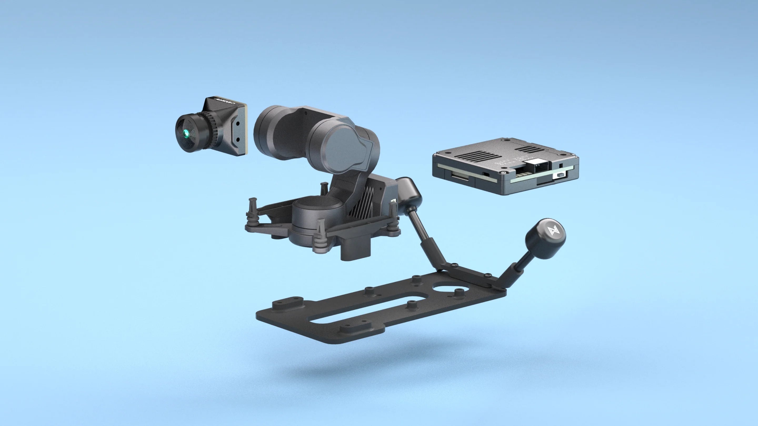 パイロットからのフィードバックに基づき、ゴーグルにヘッドトラッキング機能を実装することで、当社の研究開発チームはFPVカメラ専用のジンバルを設計しました。