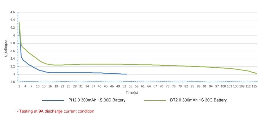 電圧低下の問題を解決することにより、300mAh 1SBT2.0リポの放電がより効率的になります。