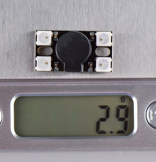 BZ110DBは、主流のフライトコントローラー、F3、F4、F7、内蔵のブザー出力をサポートし、最大音量は110 Dba、5V電圧供給に達し、4つのWS2812LEDが付属しています。