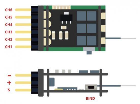 このレシーバーにはすでにDCDCバックBEC電源が組み込まれているため、ボード上のサーボポートからレシーバーに電力を供給しないでください。火傷を負ったり、レシーバーが損傷したりします。