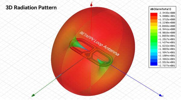 BETAFPV ループ アンテナは、360 度の水平放射パターンを備えた無指向性です。